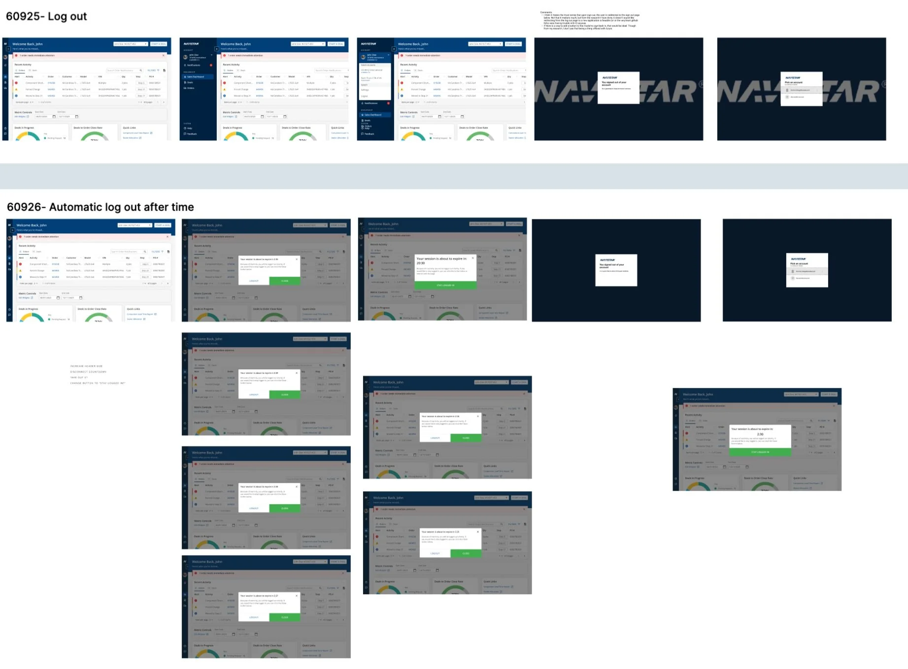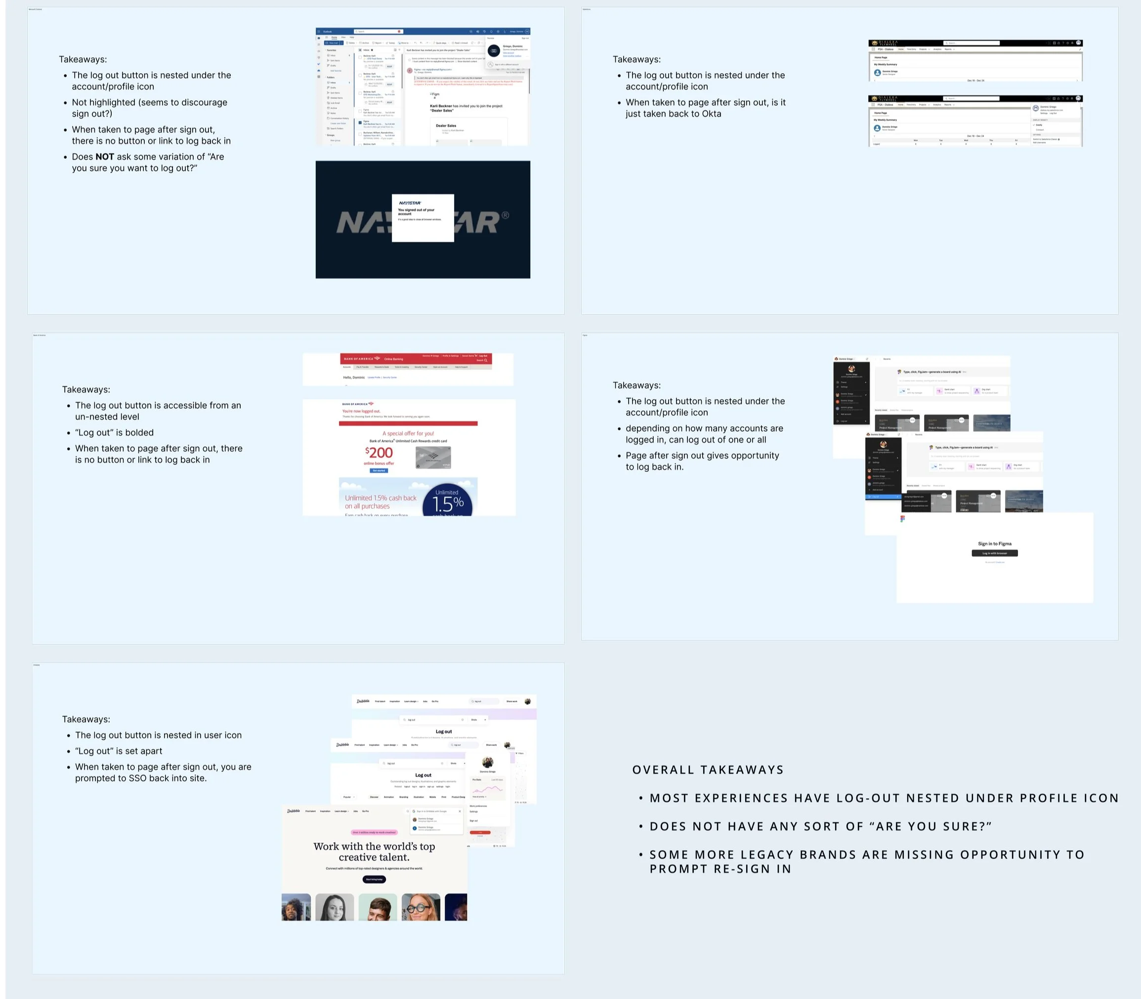 Early inspiration board for a story that centered around the log out process